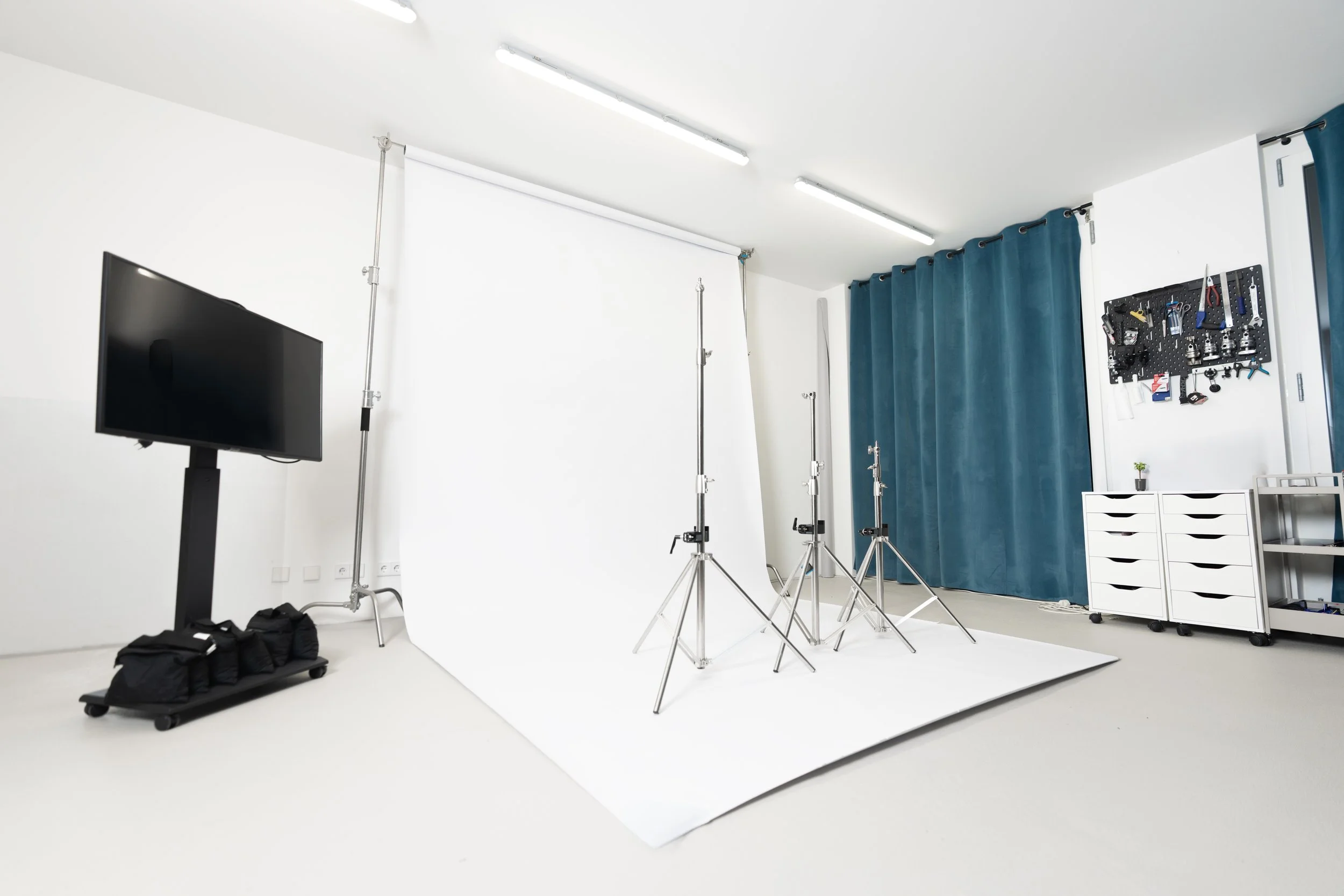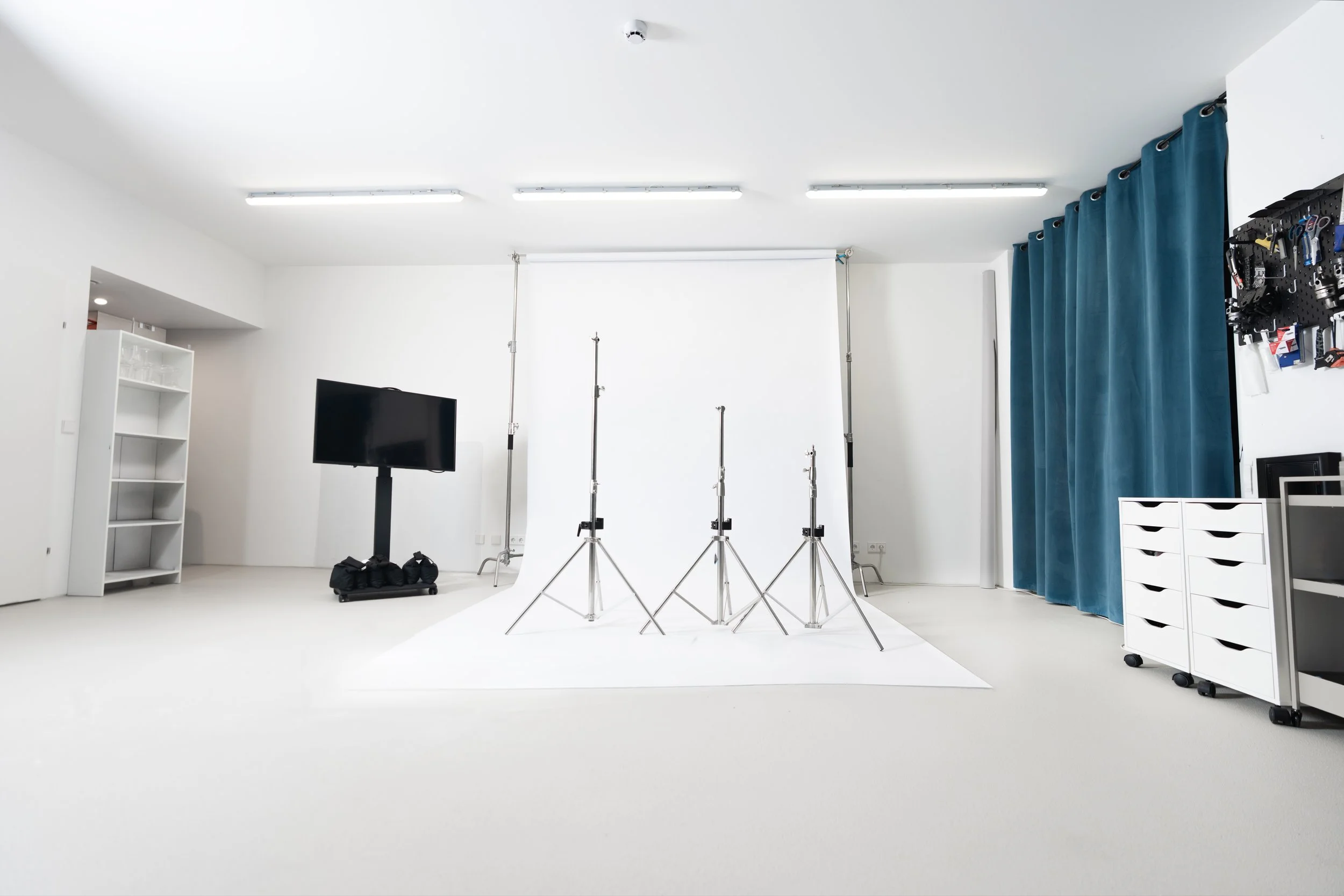 Unser Studio bietet eine flexible stundenweise Miete, professionelle Beleuchtung und optimale Bedingungen für Foto und Videoproduktionen.